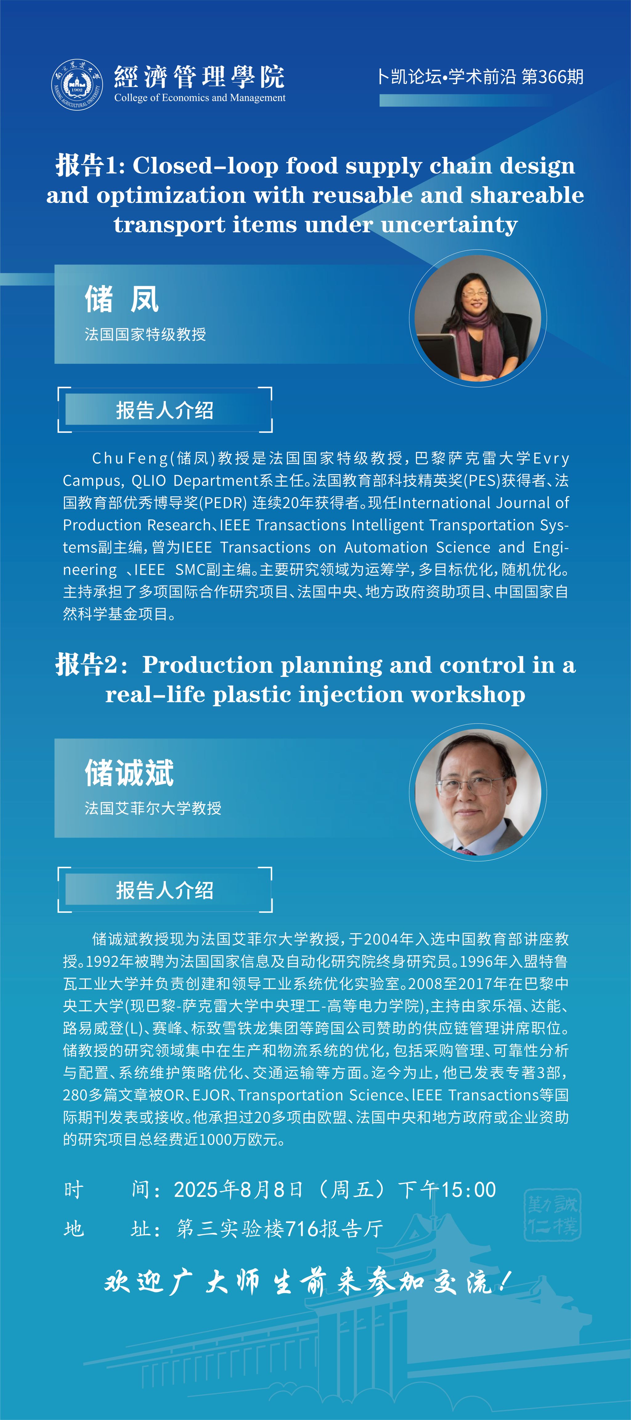 报告人:Chengbin Chu(储诚斌)教授法国艾菲尔大学