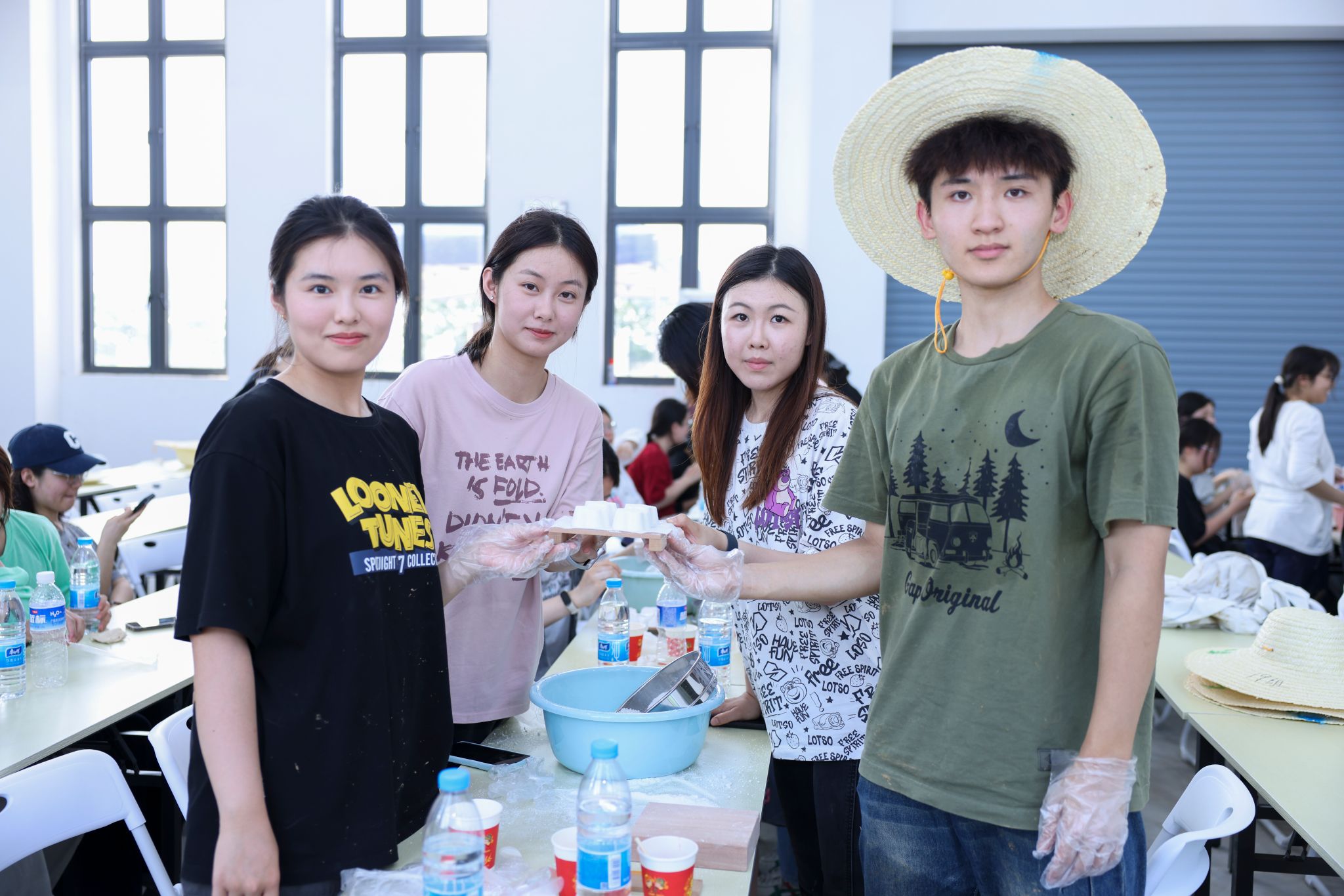 辛苦的劳动后,同学们体验非遗米糕制作,尽享劳动美好“食”光。揉粉、拌料、过筛、入模、敲打、蒸制……四十位同学分组制糕,在传统工艺中感受稻米的万千变化和内在醇香,在亲手制作的米糕里品尝热气腾腾的“实践滋味”。