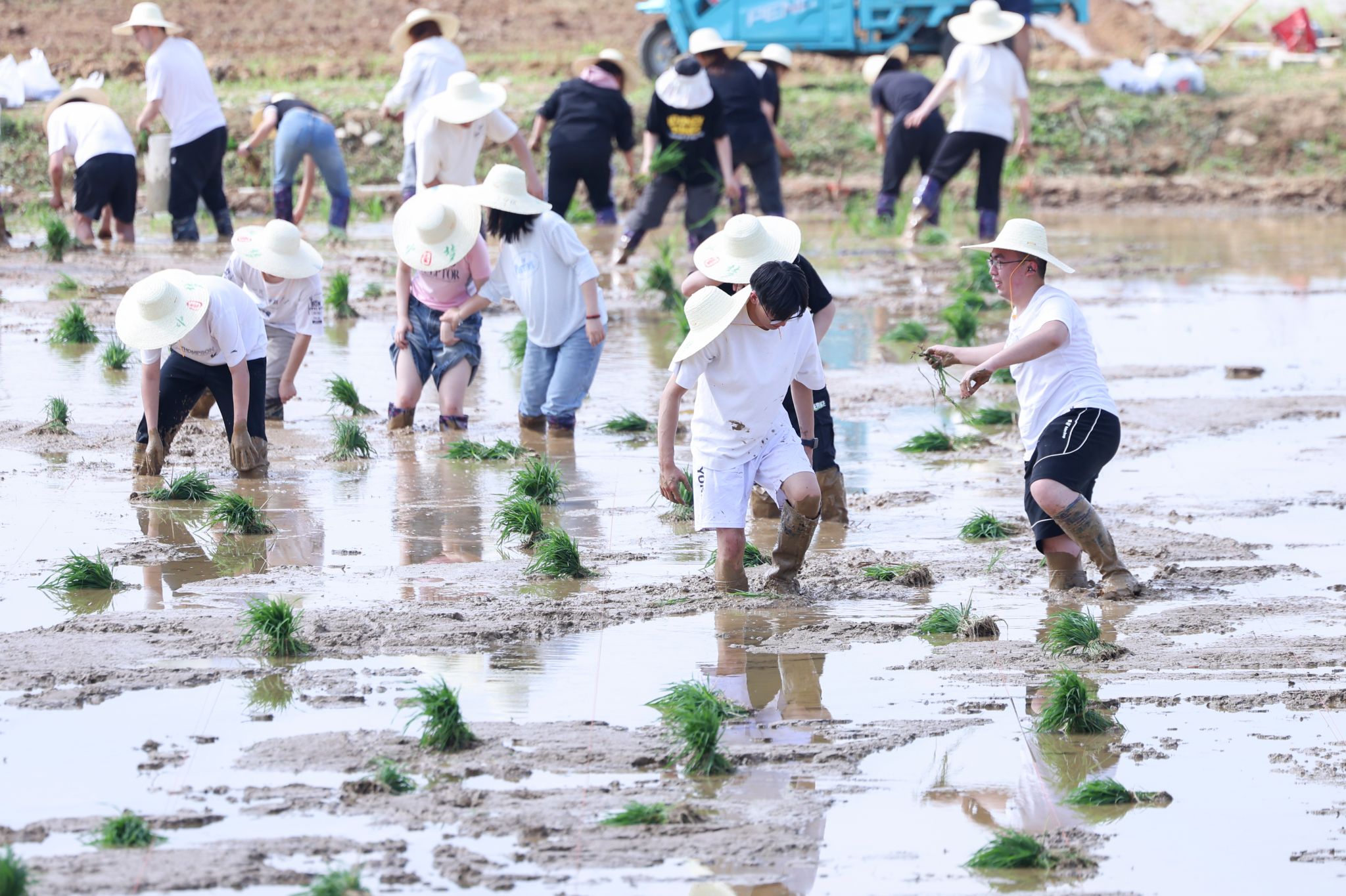 6月13日,新葡的京集团8814农经专业2022级本科生、2024级硕博生走进浮山村“大地学堂·耕读课堂”实践基地,开展插秧劳动实践活动,在泥泞水田中种下绿色希望。