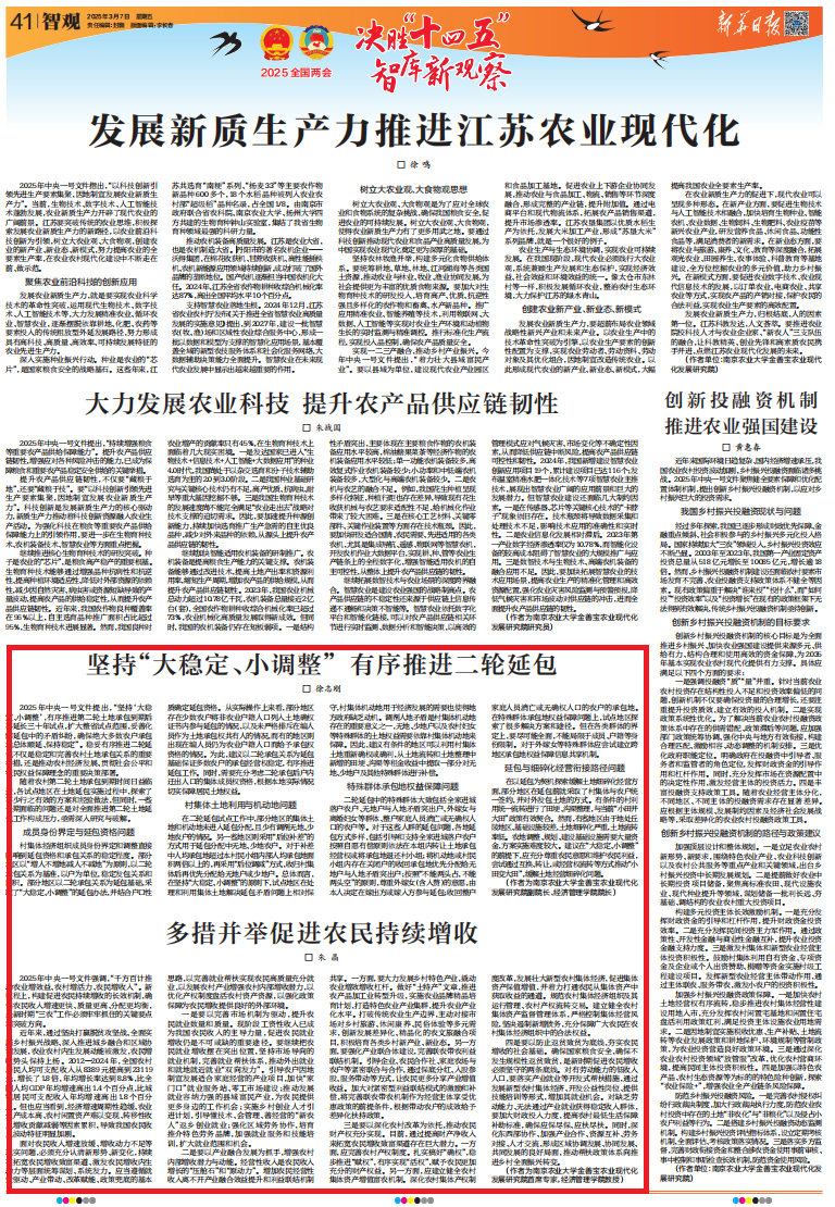 2025年中央一号文件强调,“千方百计推动农业增效益、农村增活力、农民增收入”。新征程上,构建促进农民持续增收的长效机制,确保农民收入增速更快、质量更高、分配更均衡,是新时期“三农”工作必须牢牢抓住的关键要点和突破方向。
